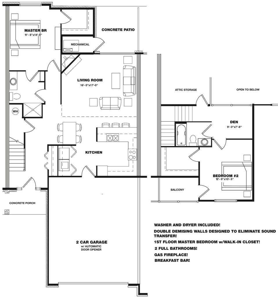 Two-Level Townhome - Plano 1 Lower End (2 Car Garage, Fireplace, Den)