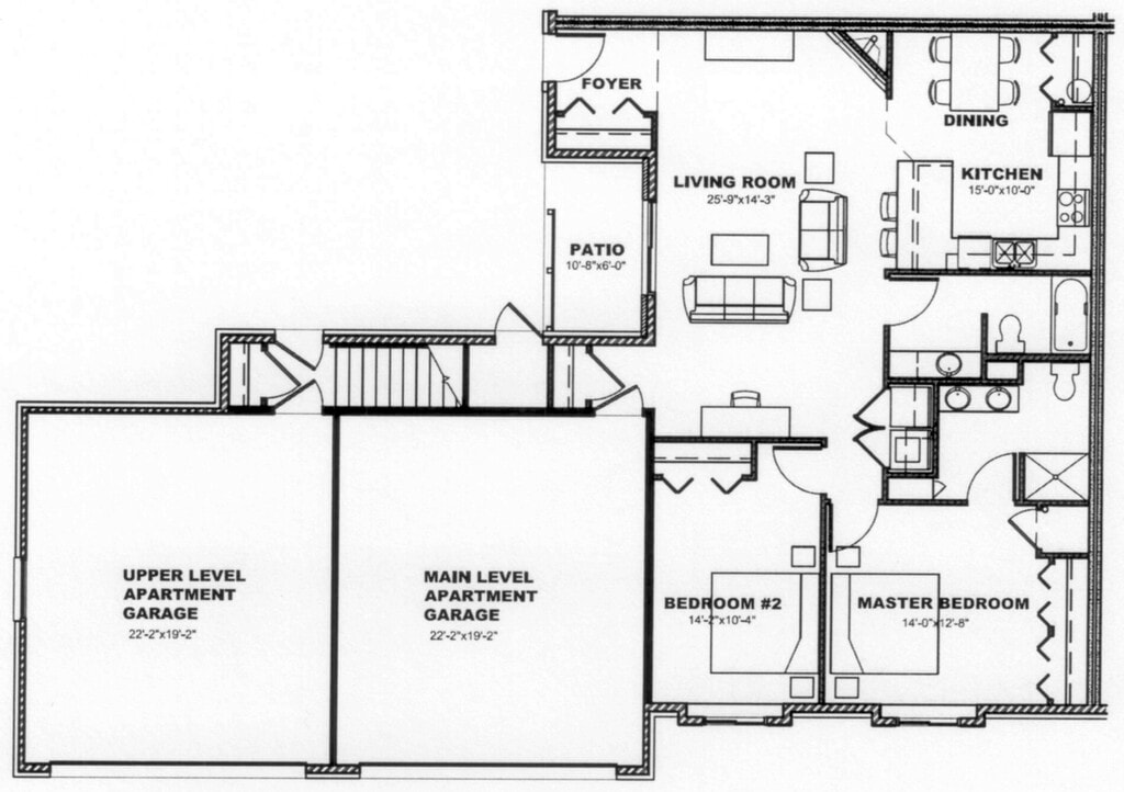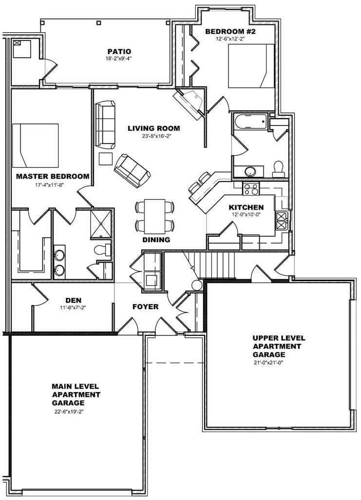 Lower End (2 Car Garage, Fireplace, Den) - Plano 1 Upper (1 Car Garage)