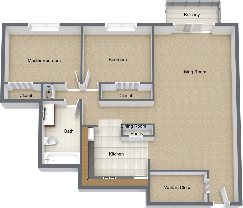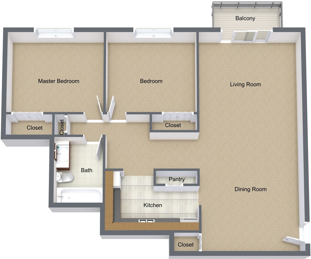 2 Dormitorios, 1 Baño, 810 pies²Disponible AhoraGalería del Modelo