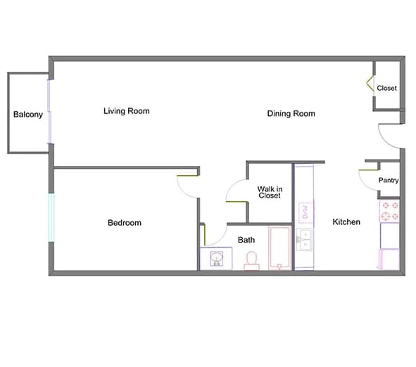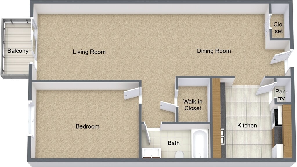 1 Dormitorio, 1 Baño, 600 pies²Disponible AhoraGalería del Modelo