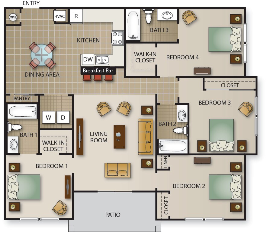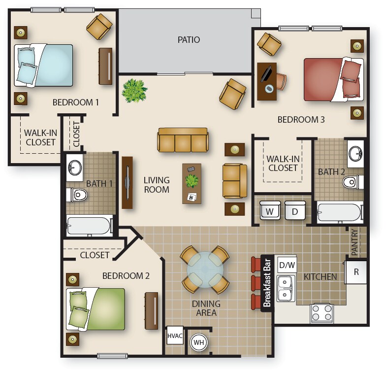 Modelo de apartamento: CarringtonDesde $1,9793 Dormitorios, 2 Baños, 1502 sq ftDisponible Ahora![]()