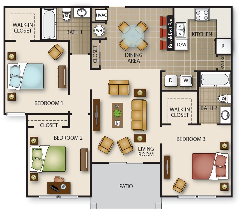 3 Dormitorios, 2 Baños, 1502 pies²Disponible AhoraEl más grandeEsta opción tiene las unidades más grandes para este modeloGalería del Modelo