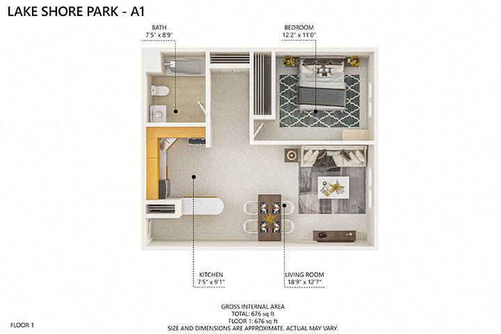 1 Dormitorio, 1 Baño, 676 pies²Disponible AhoraGalería del Modelo
