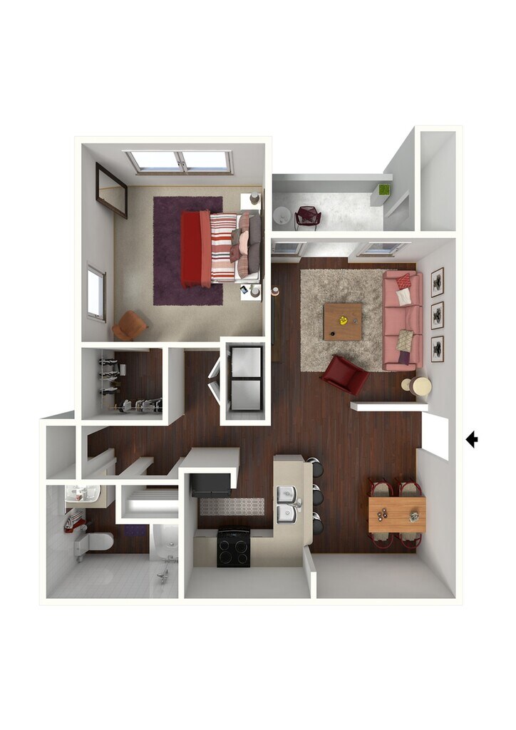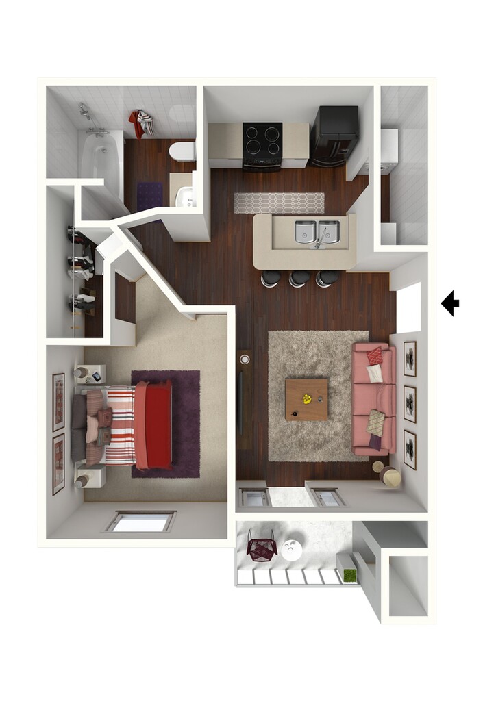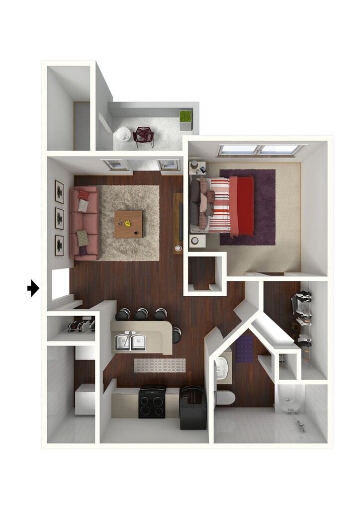 1 Dormitorio, 1 Baño, 818 pies²Disponible AhoraGalería del Modelo