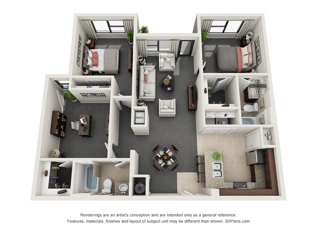 Two Bedroom Two Bath - Plano 2 Two Bedroom w/Den Two Bath (b)