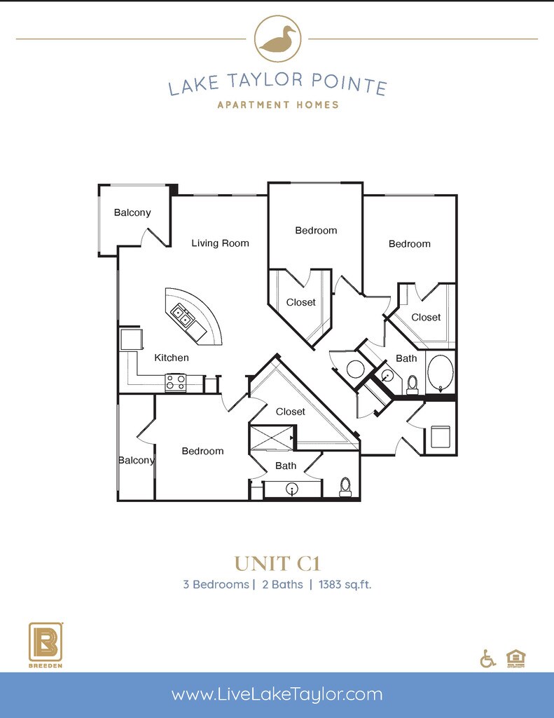 Modelo de apartamento: C13 Dormitorios, 2 Baños, 1383 sq ftDisponible January 31, 2026C1 - Imagen 1 Unidad de apartamento: 00 - 09101Modelo de apartamento: C13 Dormitorios, 2 Baños, 1383 sq ftDisponible January 31, 2026C1A1