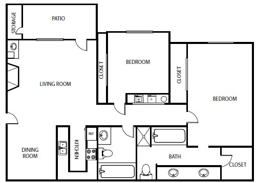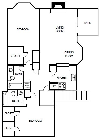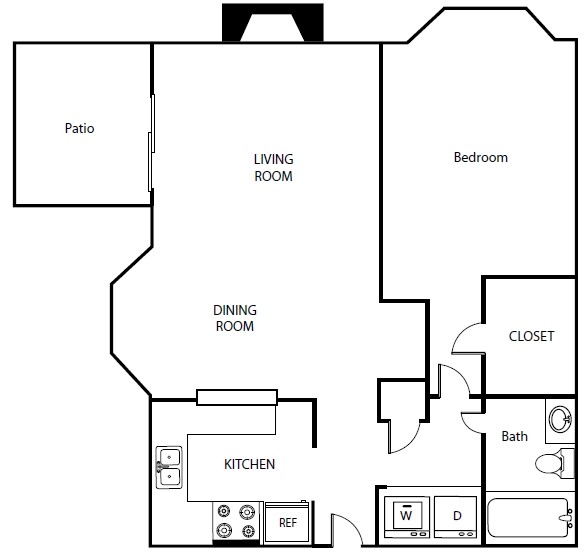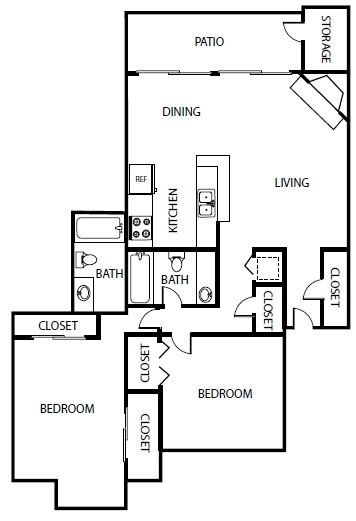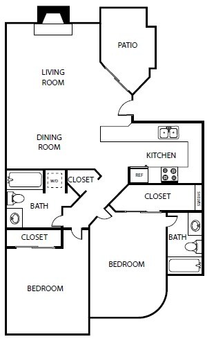 Modelo de apartamento: A2A1 Dormitorio, 1 Baño, 685 sq ftNo Disponible![]()