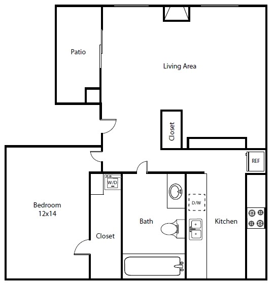 Modelo de apartamento: A5A1 Dormitorio, 1 Baño, 712 sq ftNo Disponible![]()