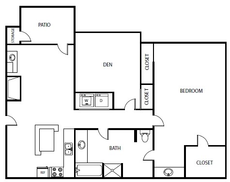 Modelo de apartamento: S11 Dormitorio, 1 Baño, 560 sq ftNo Disponible![]()
