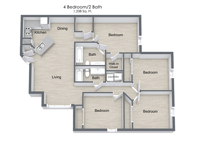 Modelo de apartamento: Four Bedroom4 Dormitorios, 2 Baños, 1292 sq ftDisponible Ahora![]()