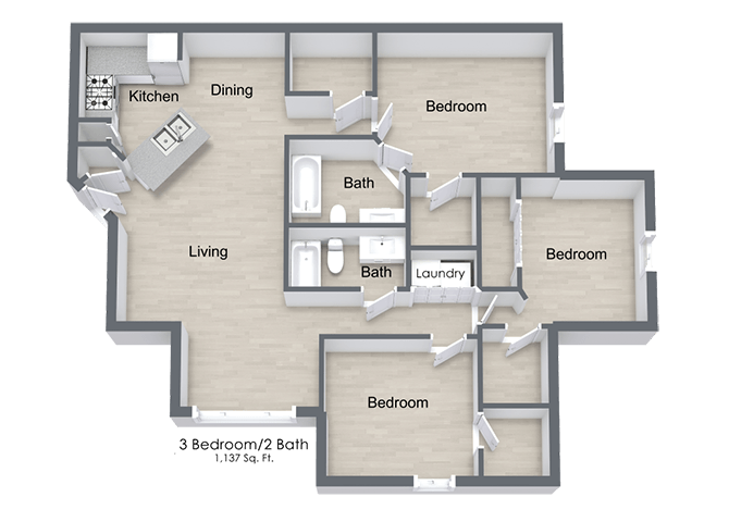 Modelo de apartamento: Three Bedroom3 Dormitorios, 2 Baños, 1204 sq ftDisponible Ahora![]()