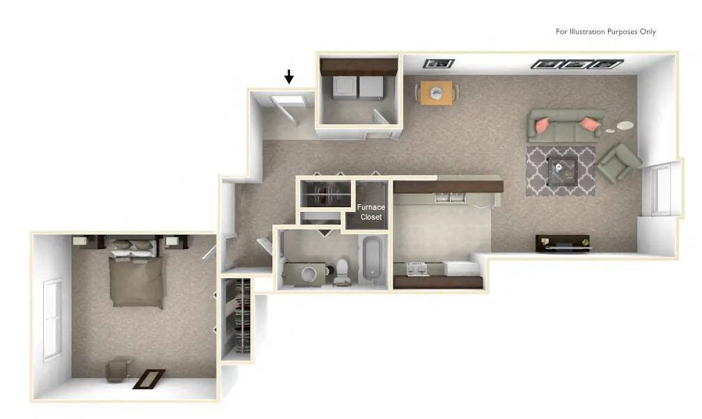 1 Dormitorio, 1 Baño, 850 pies²El más grandeEsta opción tiene las unidades más grandes para este modeloGalería del Modelo