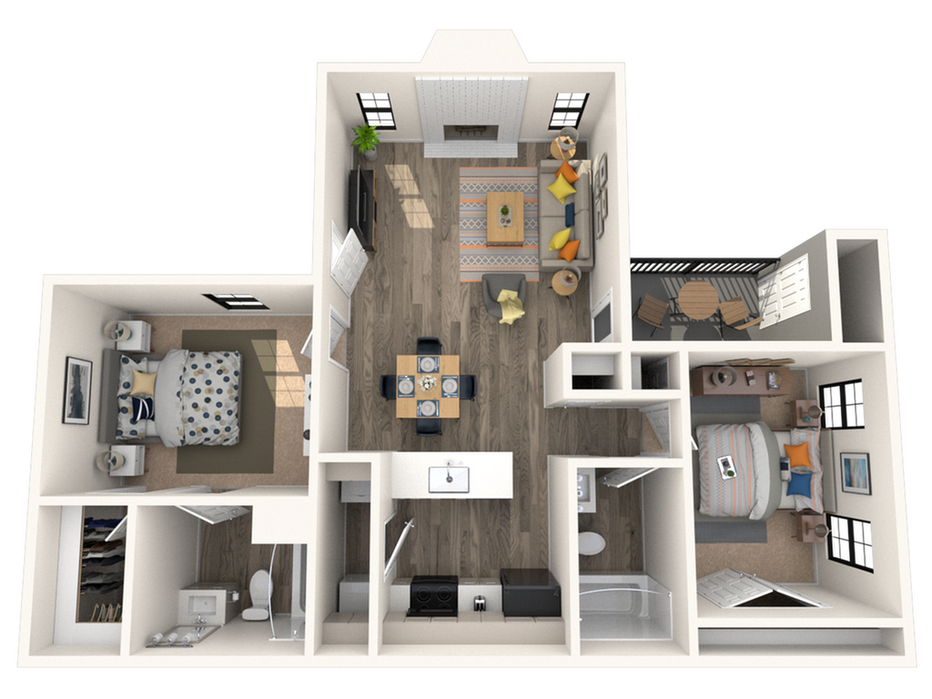 2 Dormitorios, 2 Baños, 855 pies²Disponible AhoraGalería del Modelo