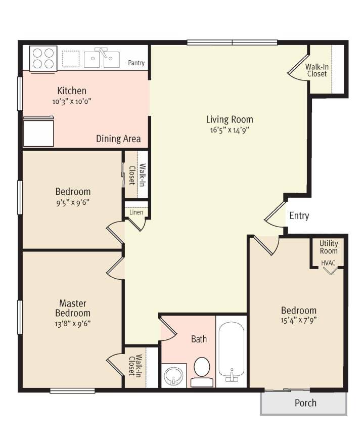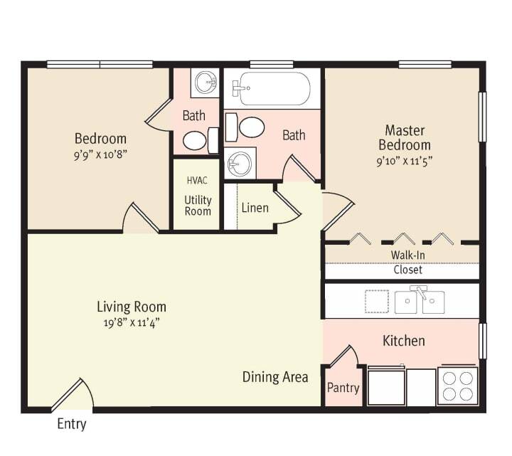 Modelo de apartamento: 2 Bedroom 1 Bath - B1$1,1802 Dormitorios, 1 Baño, 890 sq ftDisponible Ahora![]()