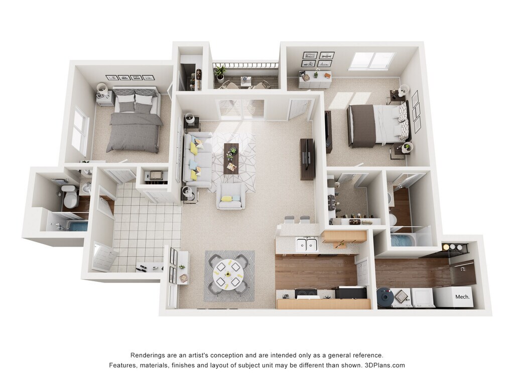 Modelo de apartamento: Dewdrop - 1,170 sq ft - 3 floor$1,5752 Dormitorios, 2 Baños, 1170 sq ftDisponible Ahora![]()