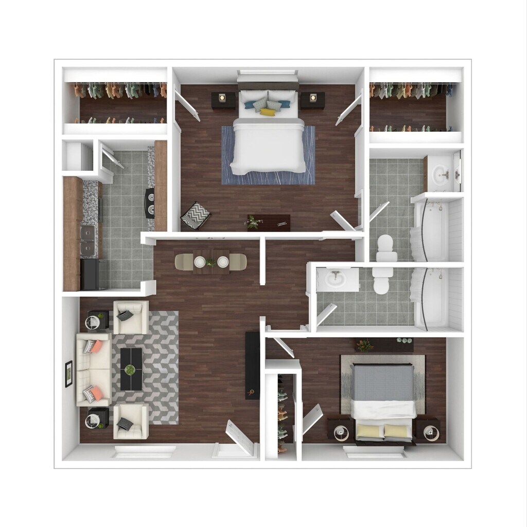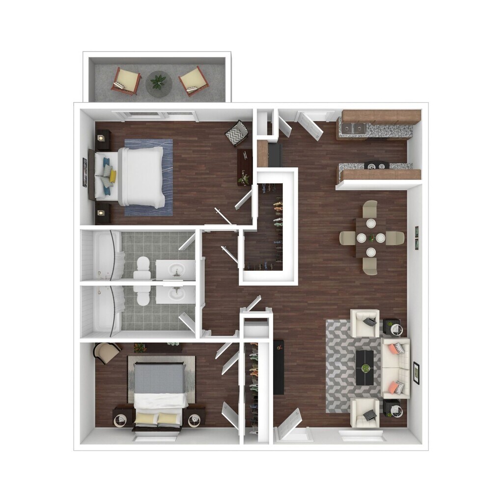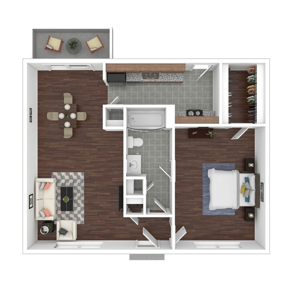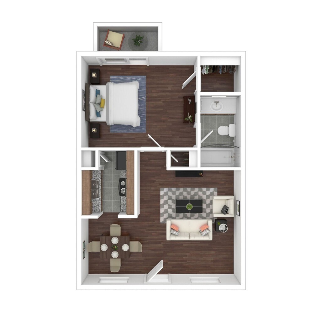 Modelo de apartamento: B1Desde $1,1391 Dormitorio, 1 Baño, 631 sq ftDisponible December 3, 2025![]()