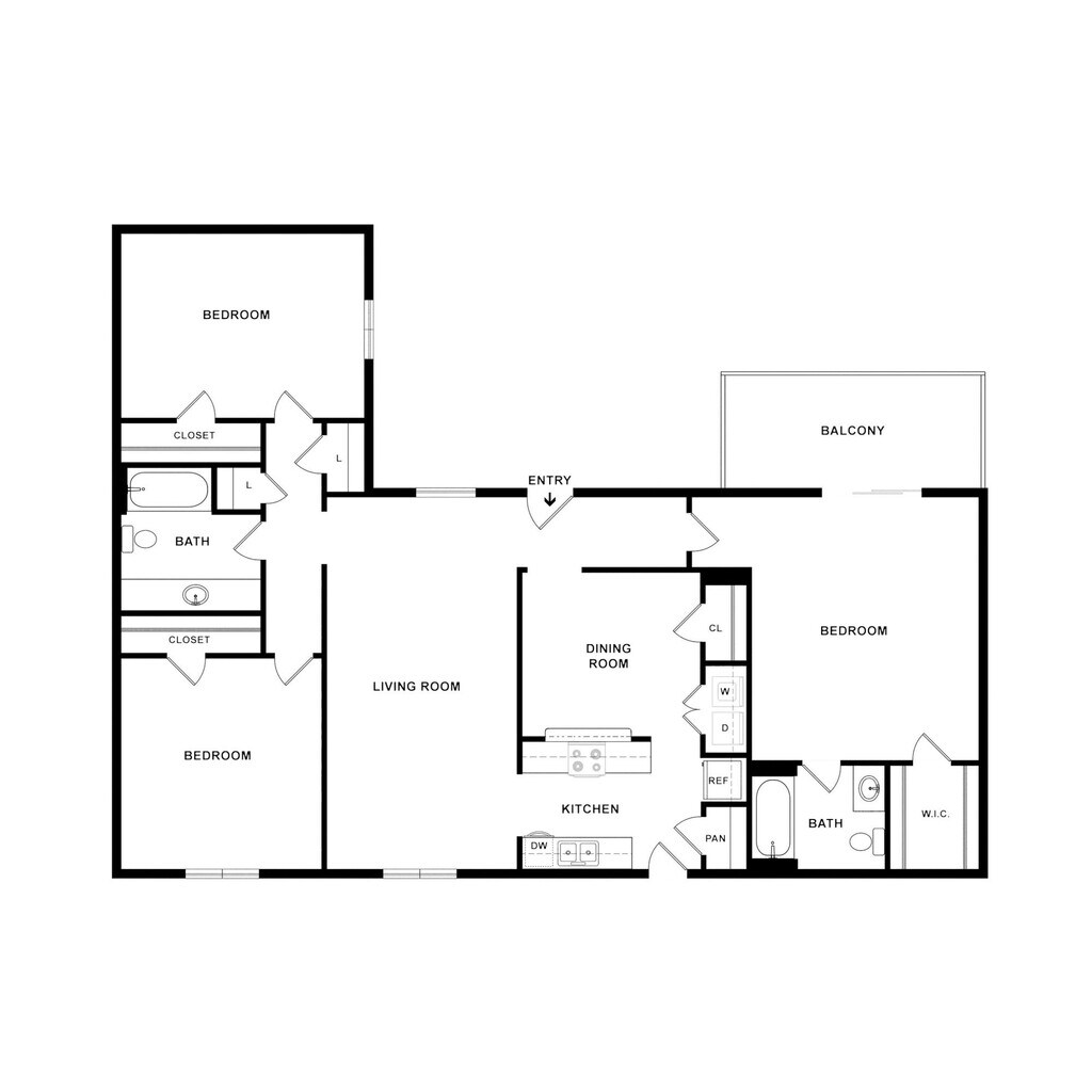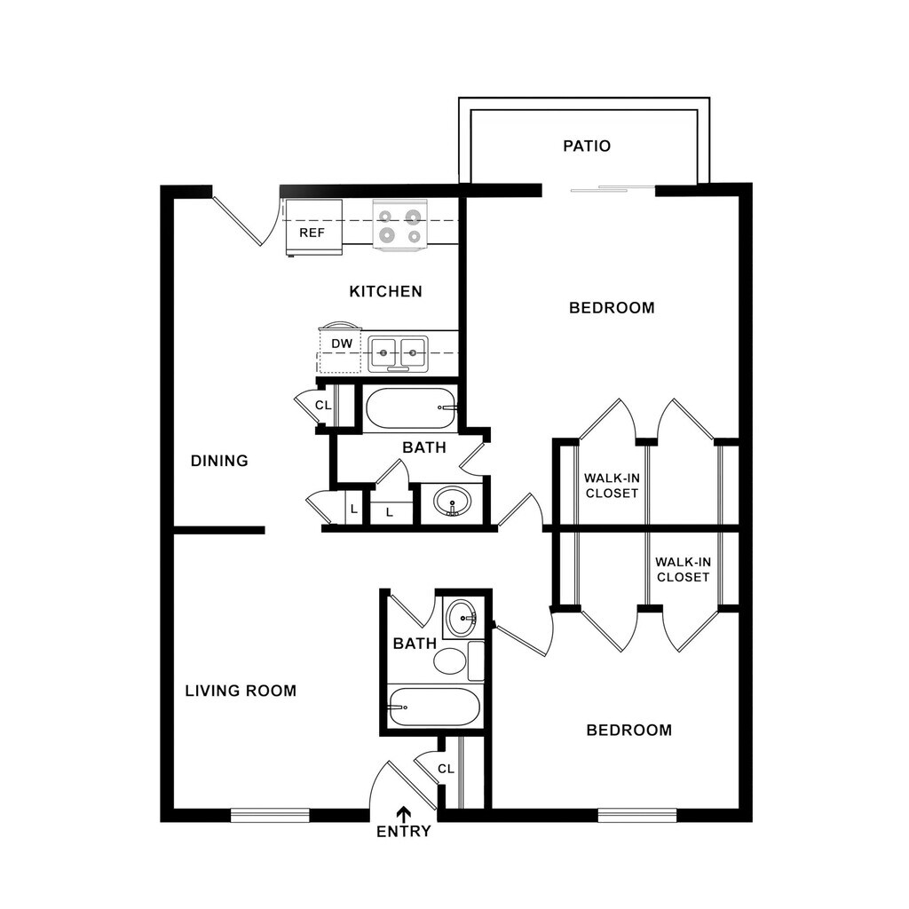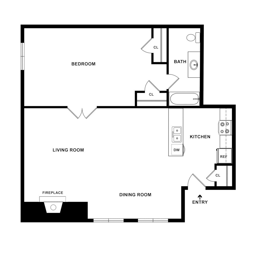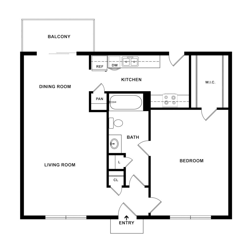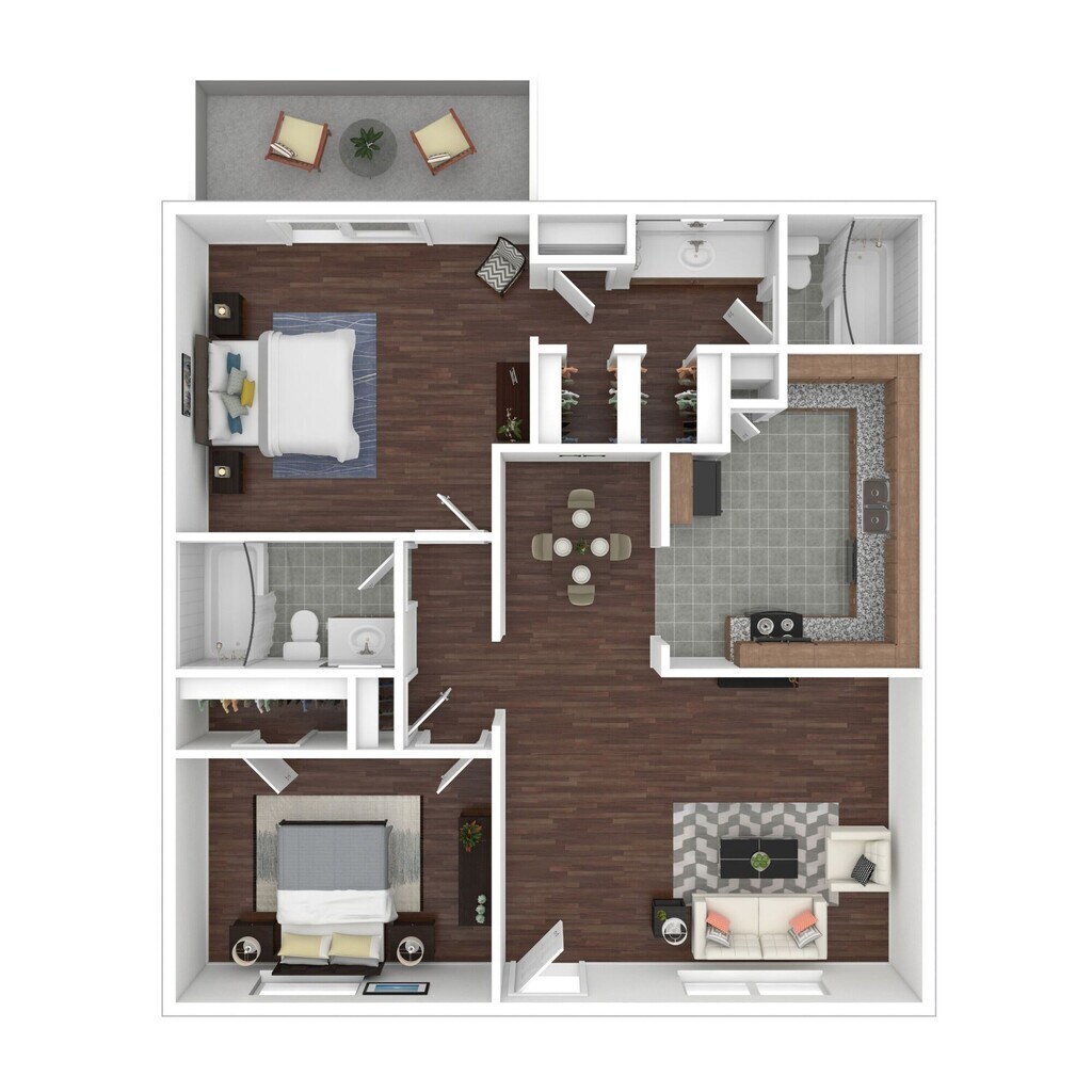 Modelo de apartamento: B1Desde $1,1391 Dormitorio, 1 Baño, 631 sq ftDisponible December 3, 2025![]()