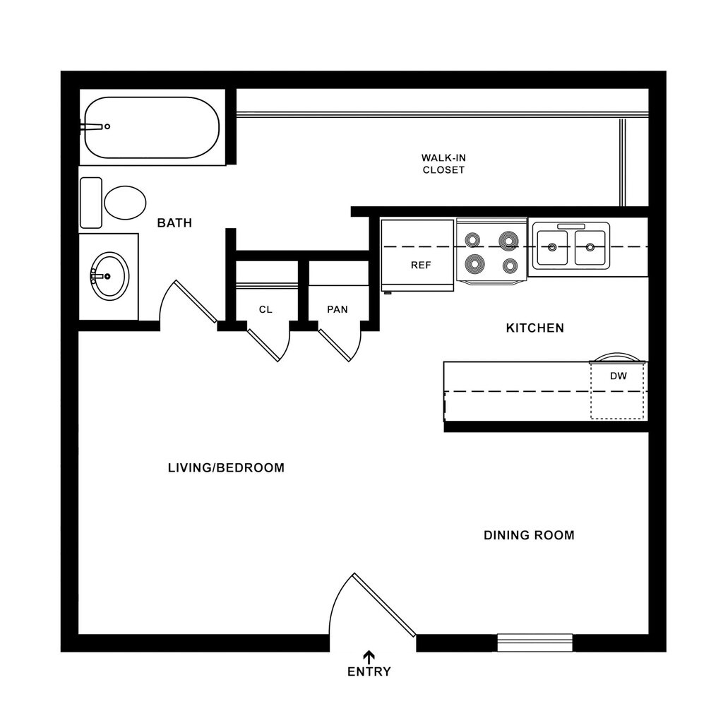 A2 - Plano 3 Unidad de apartamento: 0173Modelo de apartamento: A2$1,100Estudio, 1 Baño, 437 sq ftDisponible ProntoPlano: A1