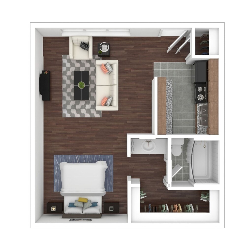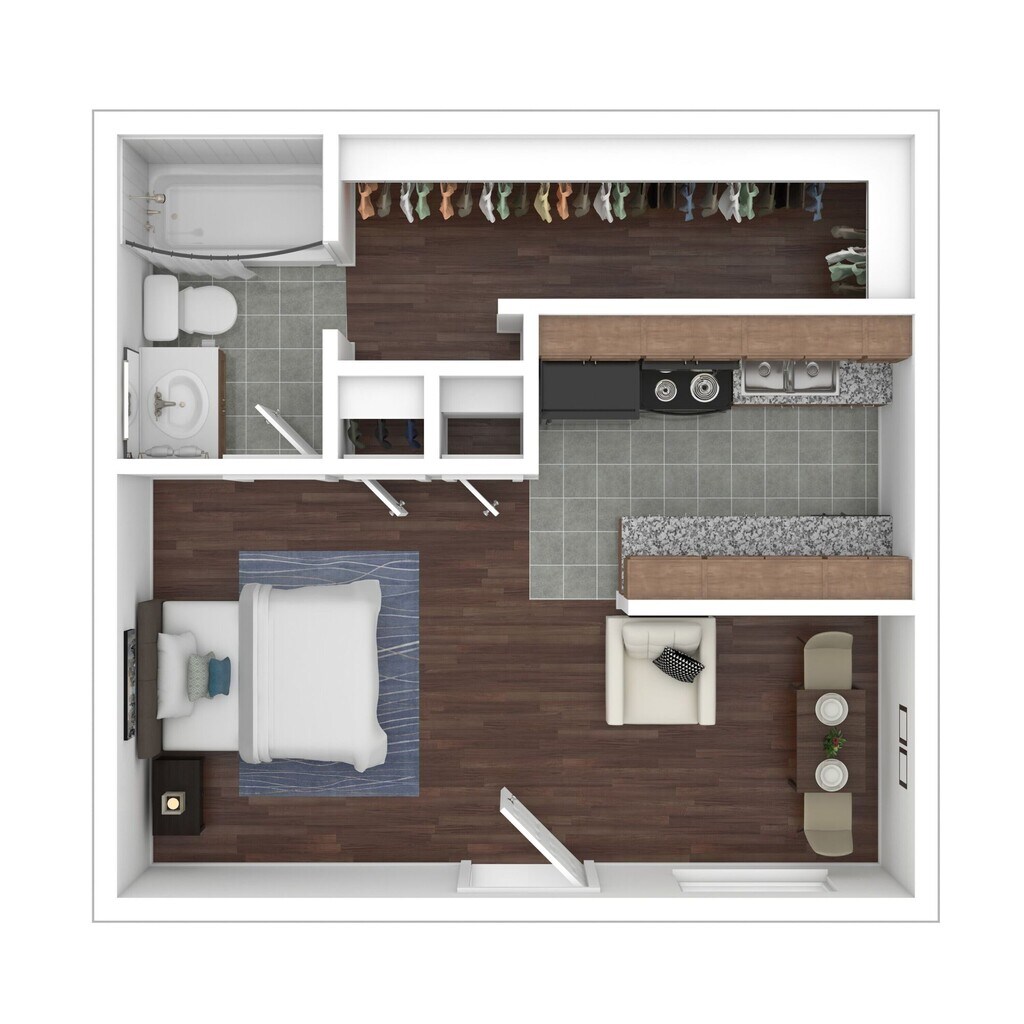 Modelo de apartamento: A1$980Estudio, 1 Baño, 358 sq ftDisponible December 11, 2025![]()