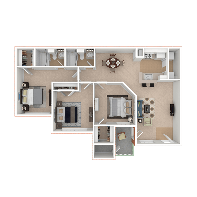 Modelo de apartamento: VictoriaDesde $1,1992 Dormitorios, 1 Baño, 749 sq ftDisponible Ahora![]()