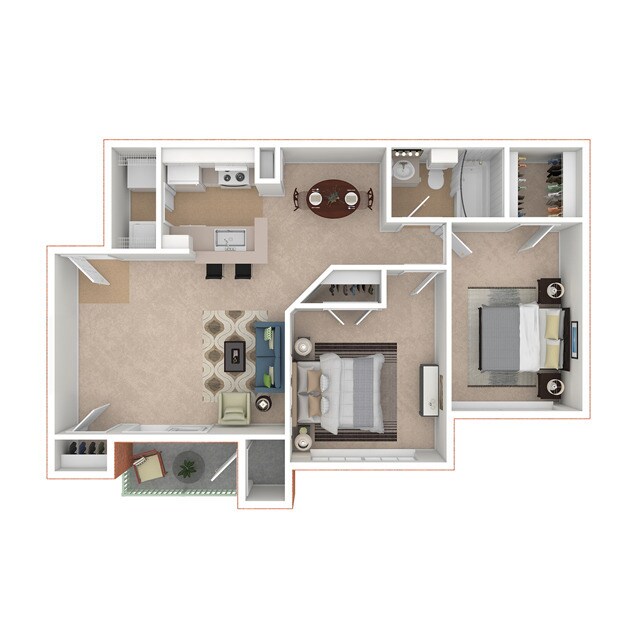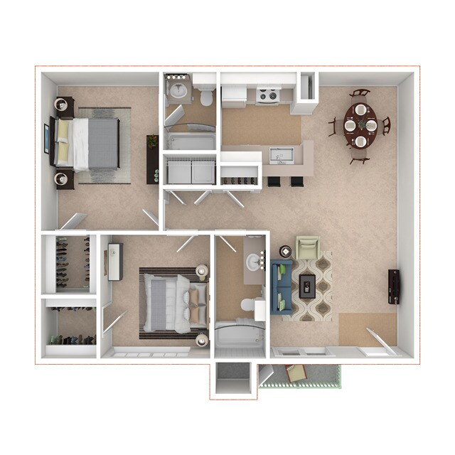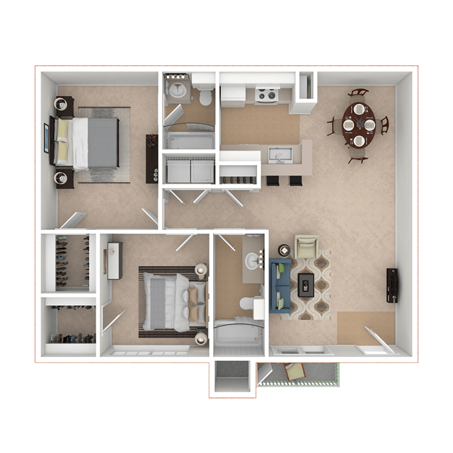 2 Dormitorios, 1 Baño, 749 pies²Disponible AhoraGalería del Modelo