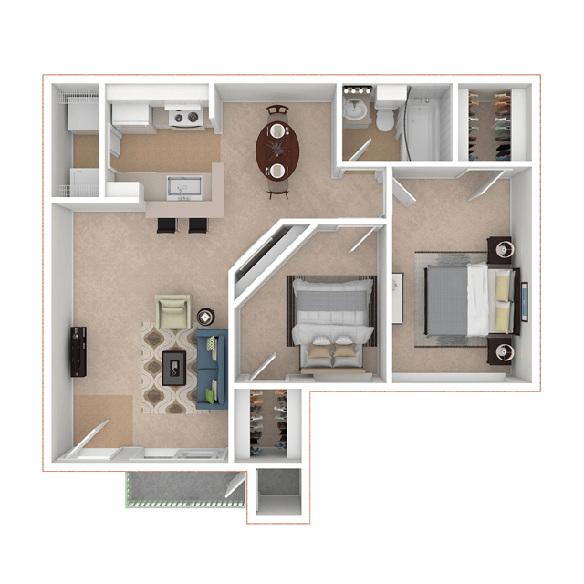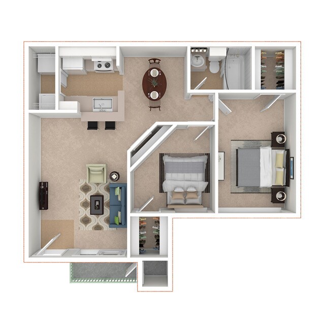 Modelo de apartamento: EdenDesde $9991 Dormitorio, 1 Baño, 586 sq ftDisponible Ahora![]()