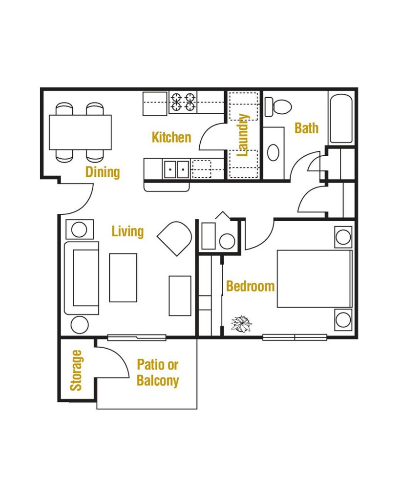 D792 - Plano 1 Unidad de apartamento: 1012Modelo de apartamento: D7921 Dormitorio, 1 Baño, 792 sq ftDisponible AhoraD740