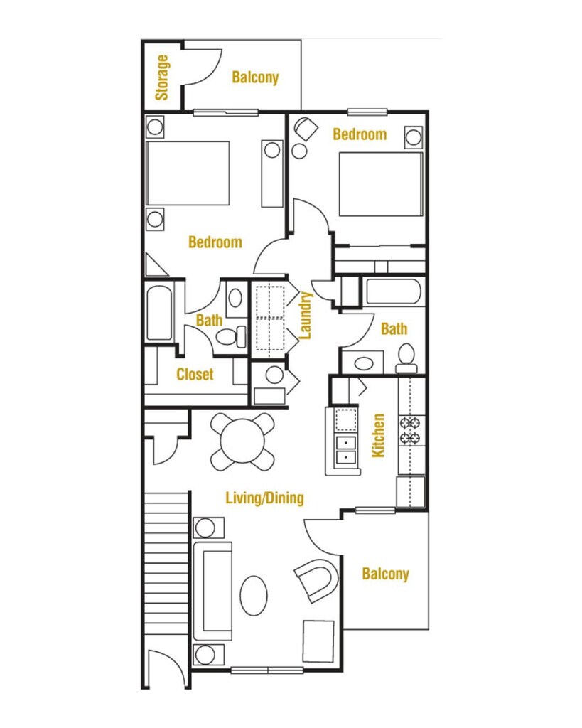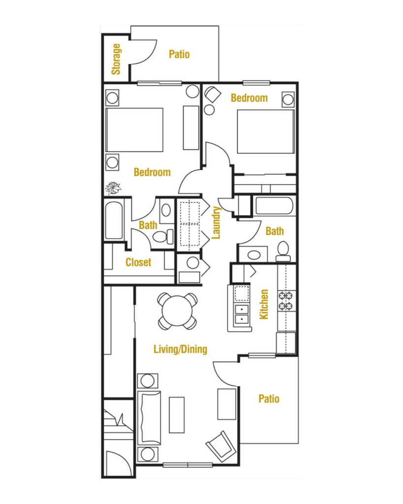 D1006 - Plano 1 Unidad de apartamento: 412Modelo de apartamento: D10062 Dormitorios, 2 Baños, 1006 sq ftDisponible November 8, 2025D1006-M