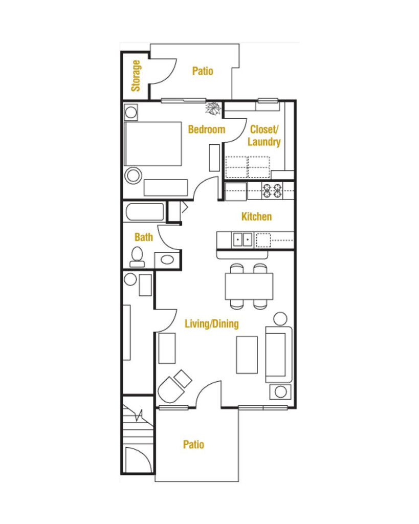 1 Dormitorio, 1 Baño, 740 pies²Disponible AhoraGalería del Modelo