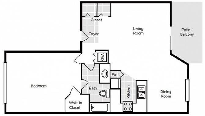 Modelo de apartamento: Carrol1 Dormitorio, 1 Baño, 670 sq ftDisponible Ahora![]()