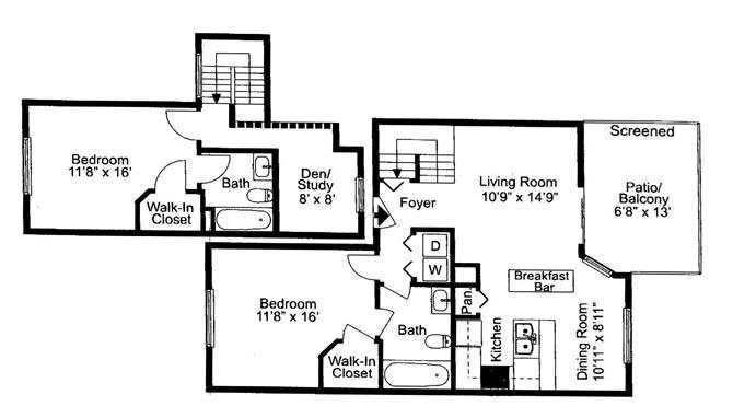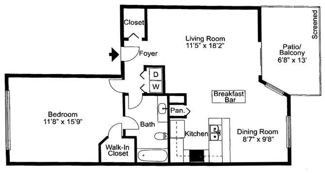Modelo de apartamento: Manatee1 Dormitorio, 1 Baño, 800 sq ftNo Disponible![]()