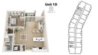 Modelo de apartamento: 1E$1,4251 Dormitorio, 1 Baño, 943 sq ftDisponible Ahora1E - Plano 1 Plano: 1F