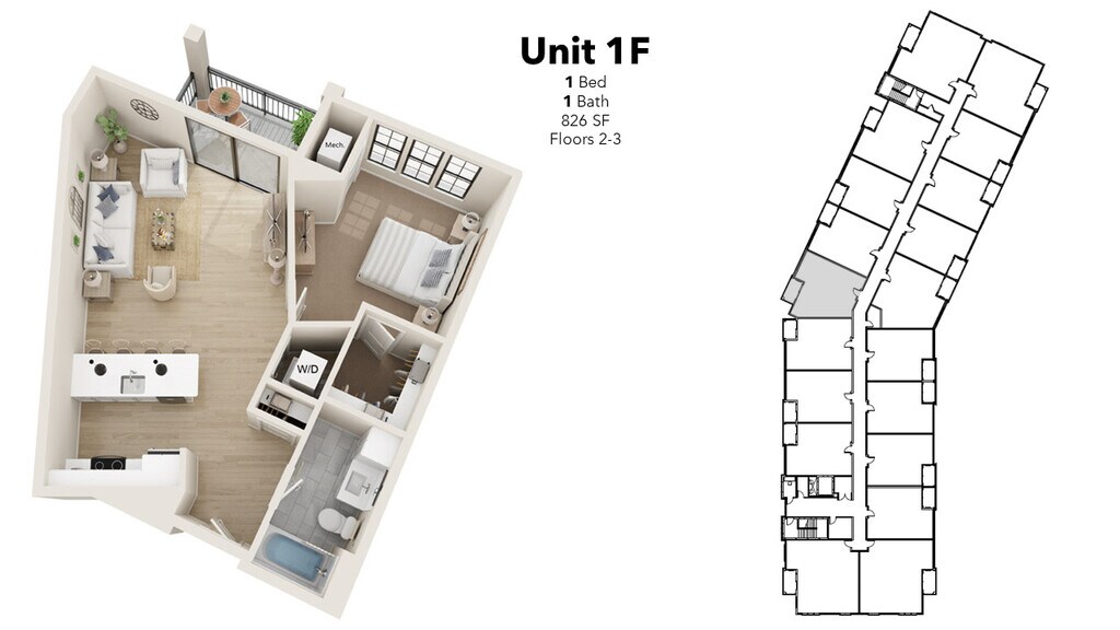 1 Dormitorio, 1 Baño, 773 pies²Disponible AhoraGalería del Modelo