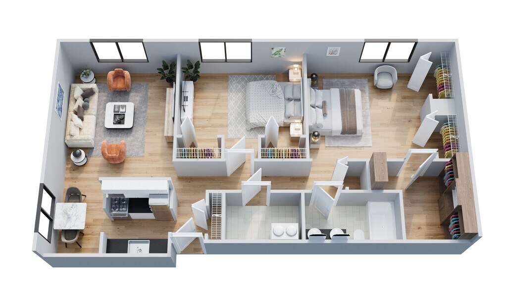 1 Dormitorio, 1 Baño, 744 pies²Disponible February 6, 2026Galería del Modelo