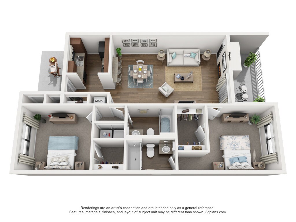 2 Dormitorios, 1 Baño, 870 pies²Disponible AhoraGalería del Modelo