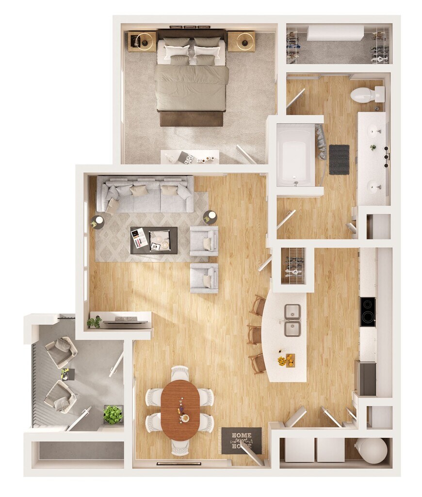 Modelo de apartamento: A4Desde $1,2621 Dormitorio, 1 Baño, 758 sq ftDisponible November 21, 2025![]()