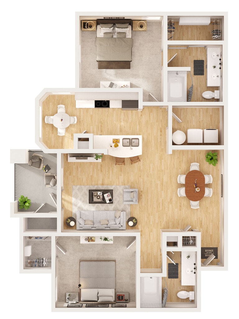 Selecciona un magnífico apartamento de la colección de Lakeside Villas. Elige entre una variedad de planos de planta de una, dos y tres habitaciones. Cada apartamento está diseñado con zonas verdes para tu comodidad y conveniencia. Cada apartamento de lujo ha sido cuidadosamente diseñado para proporcionarte un nivel de comodidad contemporánea que no está disponible en ningún otro lugar de la ciudad. Los estilos de apartamentos espaciosos se ajustan a tu estilo de vida a la perfección. En Lakeside Villas, numerosas y exclusivas comodidades te garantizan que estarás rodeado de relajación y oportunidades de entretenimiento.