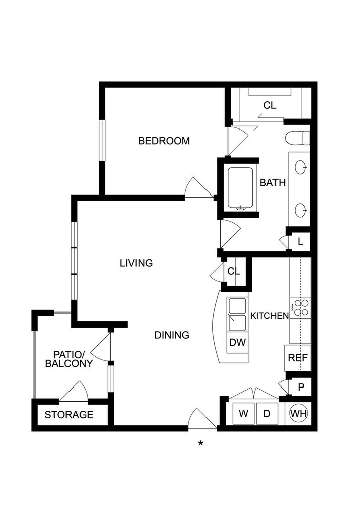 Modelo de apartamento: A1RDesde $1,3191 Dormitorio, 1 Baño, 623 sq ftDisponible Ahora![]()