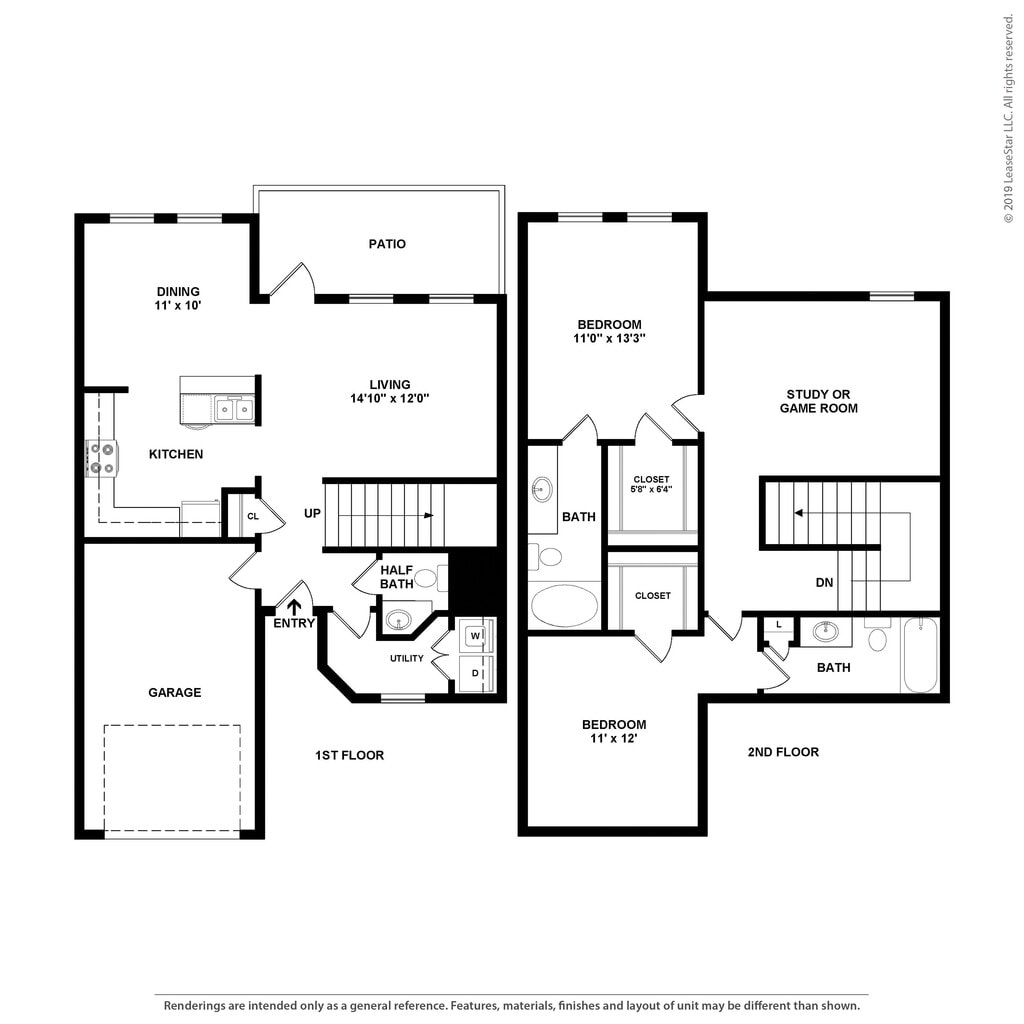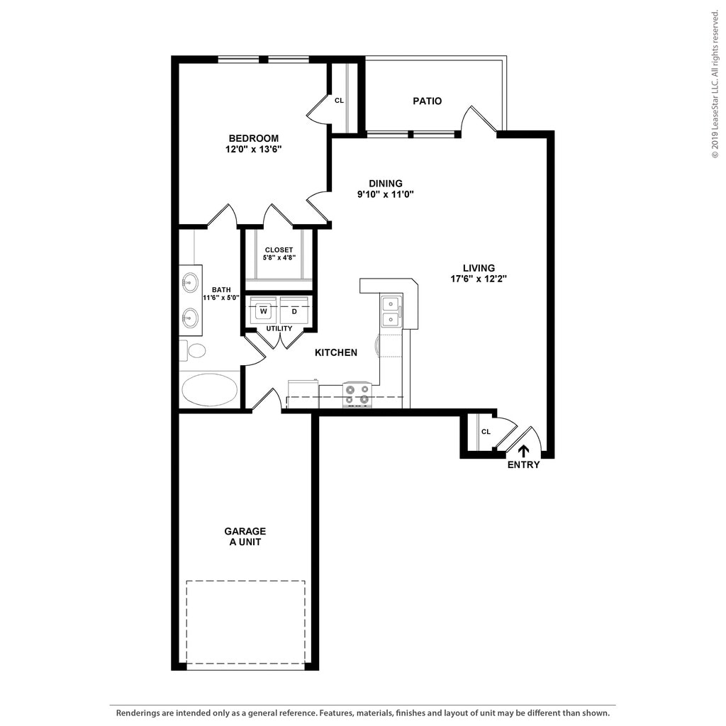 1 Dormitorio, 1 Baño, 1024 pies²Galería del Modelo