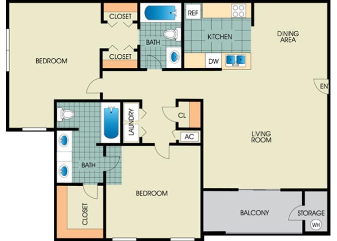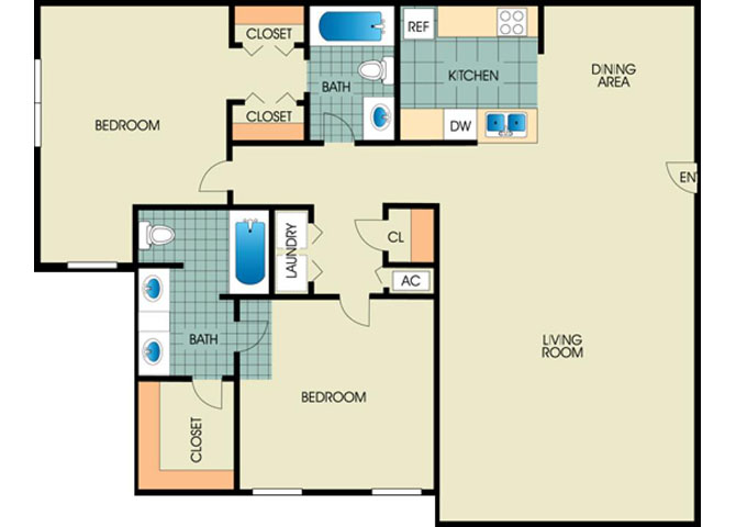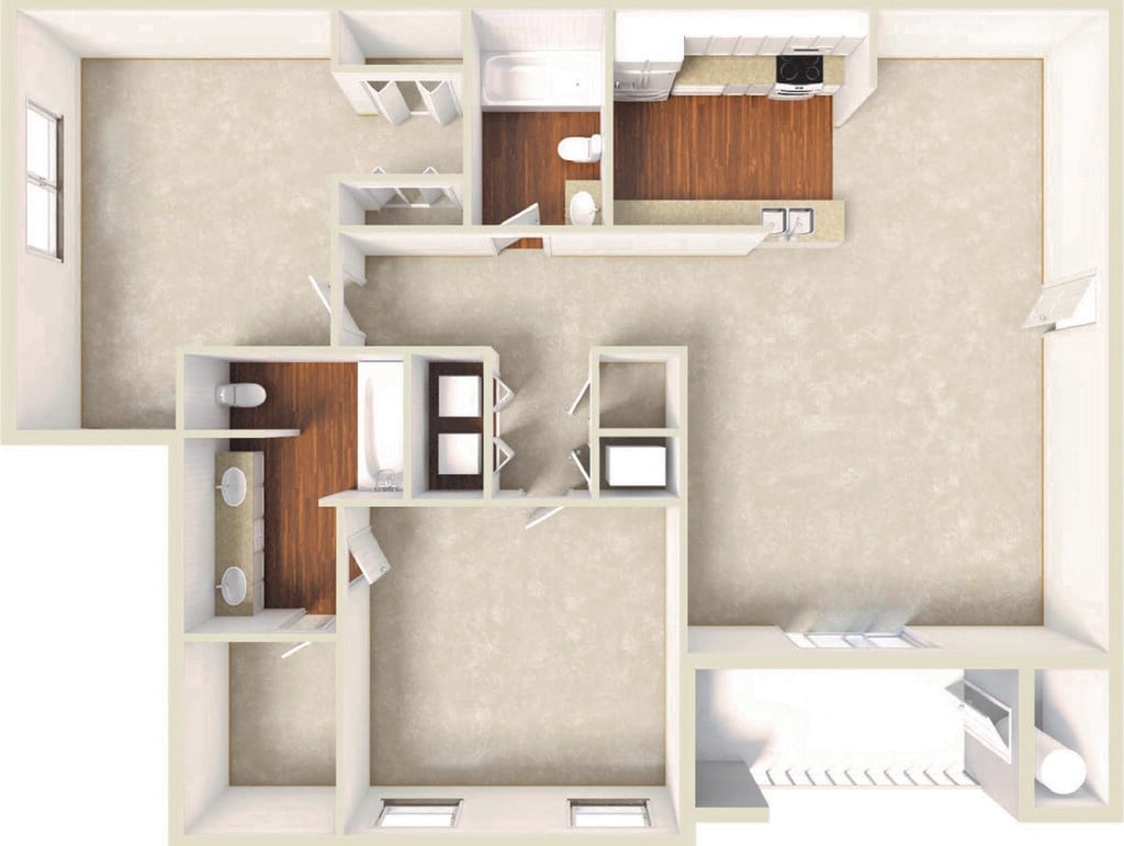 Modelo de apartamento: Iris -2BD 2BTH2 Dormitorios, 2 Baños, 1165 sq ftNo DisponiblePlanosFotos![]()