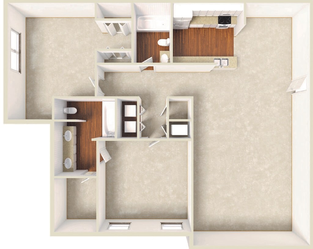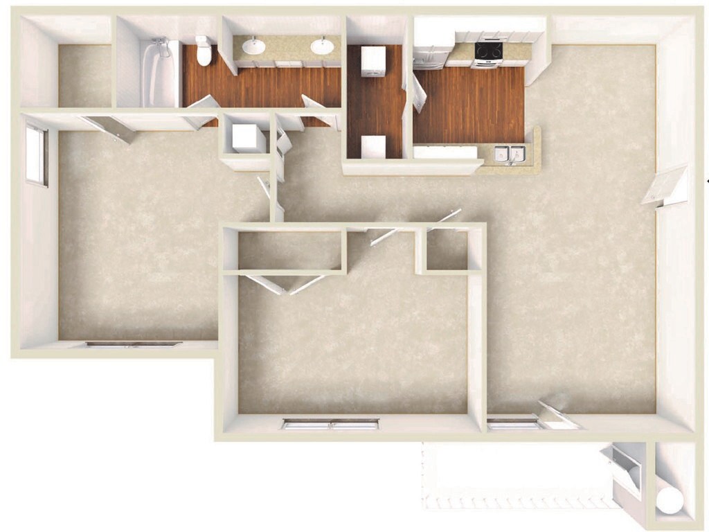 Modelo de apartamento: Jasmin -2BD 1BTH2 Dormitorios, 1 Baño, 945 sq ftNo Disponible![]()