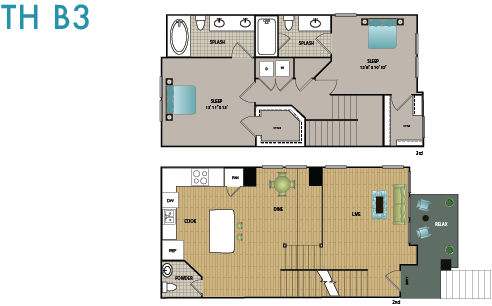 Modelo de apartamento: TH A1Desde $2,0481 Dormitorio, 1.5 Baños, 906 sq ftDisponible Ahora![]()