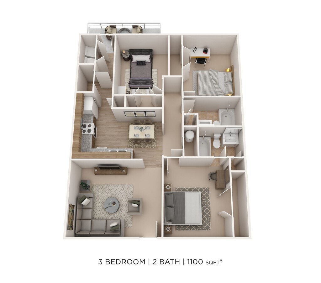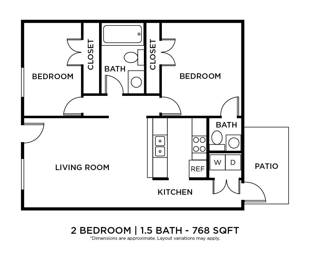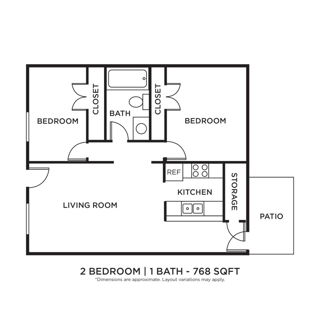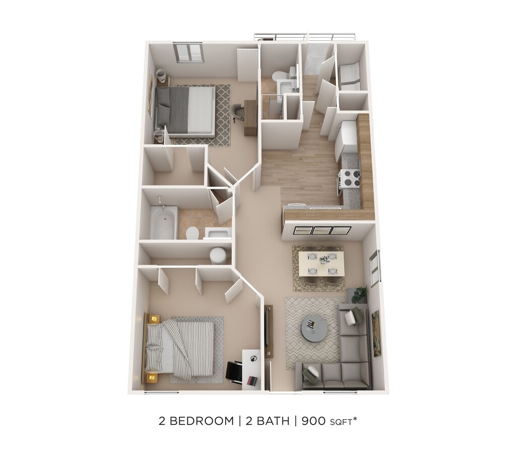 Modelo de apartamento: Two BedroomDesde $9852 Dormitorios, 1 Baño, 768 sq ftDisponible Ahora![]()