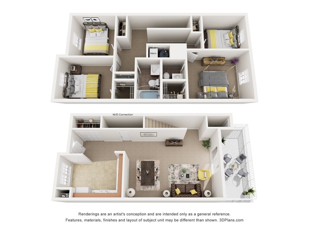 Modelo de apartamento: Four BedroomLlame para Precios4 Dormitorios, 2 Baños, 1450 sq ftNo DisponiblePlanosFotos![]()