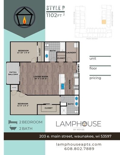 Lamphouse Apartments se encuentra en el código postal 53597 de Waunakee, WI. Esta comunidad está gestionada profesionalmente por Hovde Properties
