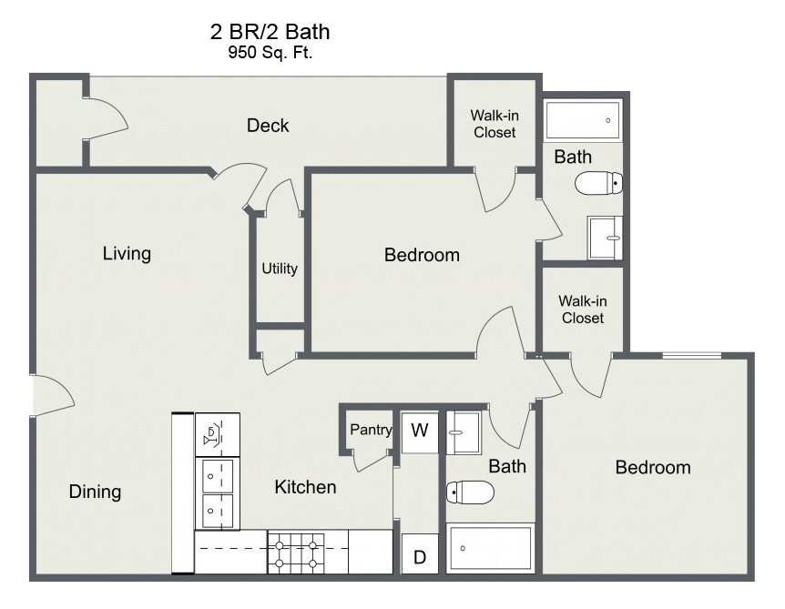 Modelo de apartamento: Two Bedroom2 Dormitorios, 2 Baños, 960 sq ftDisponible Ahora![]()