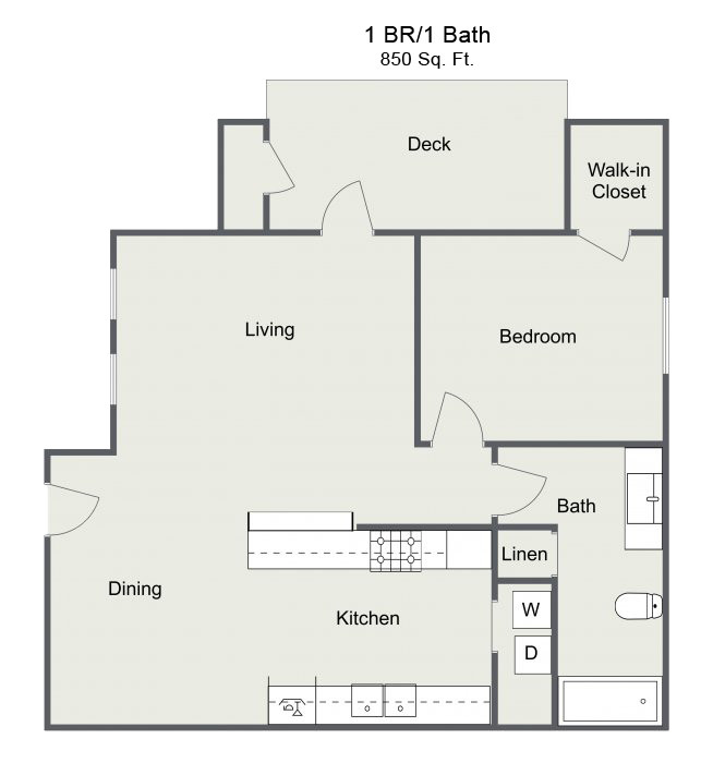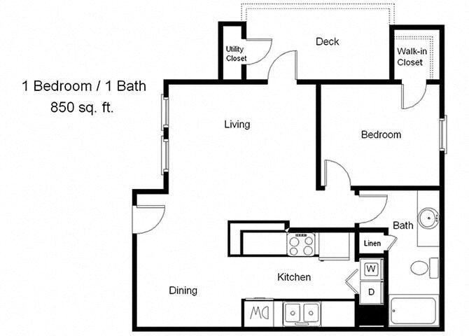 1 Dormitorio, 1 Baño, 850 pies²Disponible AhoraGalería del Modelo