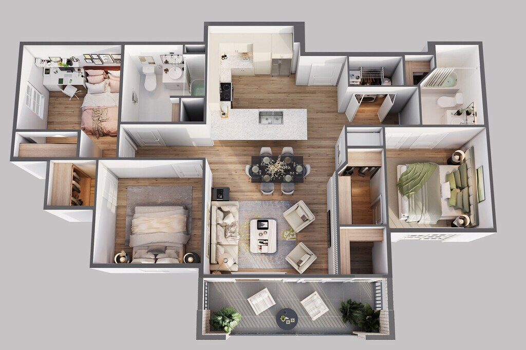 2 Bed 1061sf - Plano 1 3 Dormitorios