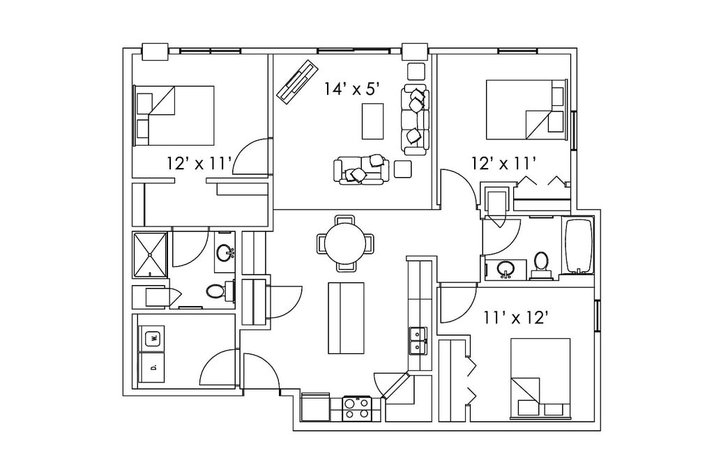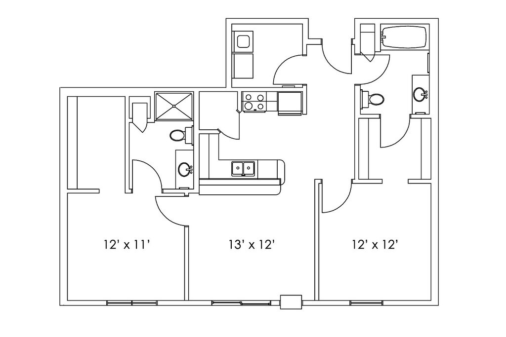 Modelo de apartamento: 3 Bed 2 Bath3 Dormitorios, 2 Baños, 1201 sq ftNo Disponible![]()