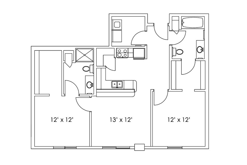 2 Bedroom 1 Bath - Plano 2 2 Bedroom 2 Bath